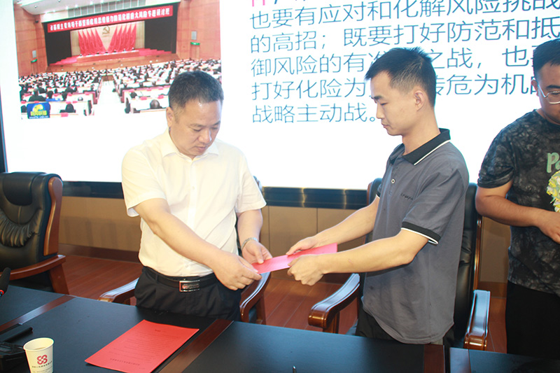▲各項(xiàng)目負(fù)責(zé)人簽署《項(xiàng)目部主要負(fù)責(zé)人安全承諾書》并呈交給總經(jīng)理