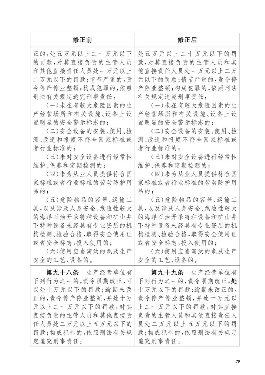 第九十八條生產(chǎn)經(jīng)營單位有下列行為之一的,責令停止建設或者停產(chǎn)停業(yè)整頓,限期改正,并處十萬元以上五十萬元以下的罰款,對其直接負責的主管人員和其他直接責任人員處二萬元以上五萬元以下的罰款;逾期未改正的,處五十萬元以上一百萬元以下的罰款,對其直接負責的主管人員和其他直接責任人員處五萬元以上十萬元以下的罰款;構(gòu)成犯罪的,依照刑法有關規(guī)定追究刑事責任: