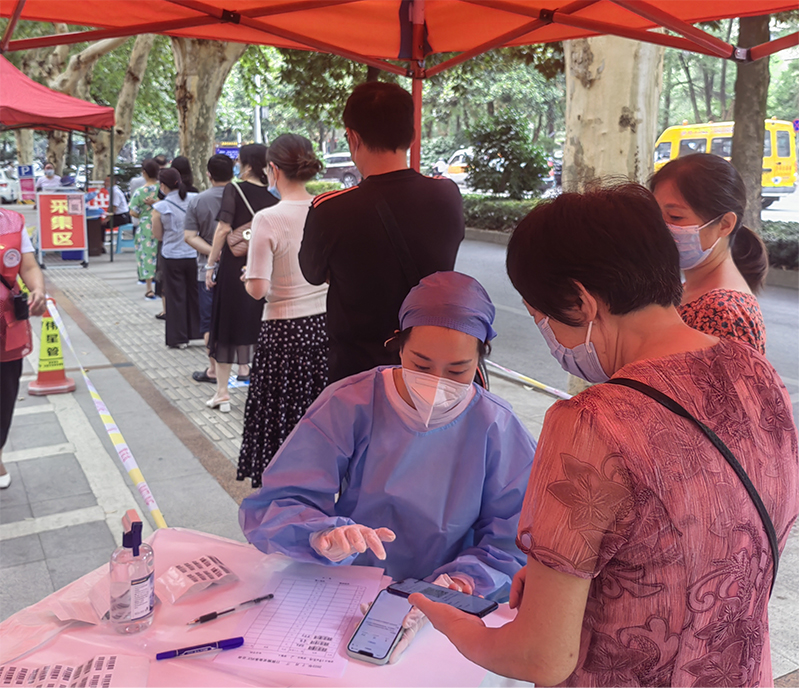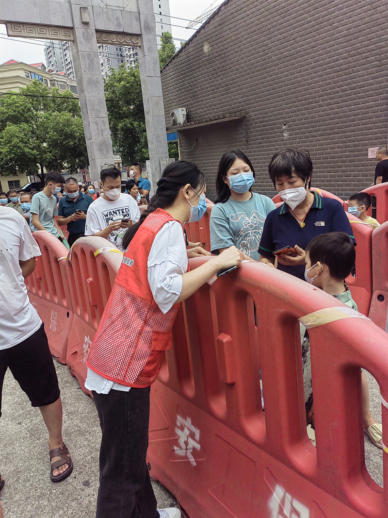 在核酸檢測現場,志愿者們與工作人員一同引導居民們按順序依次進行核酸檢測,認真核對好檢測人員的身份信息并進行錄入,做到規(guī)范、科學、快速有序開展登記和檢測工作,做好檢測人員的銜接,最大限度提高檢測工作效率,確保全民檢測工作有序開展。
