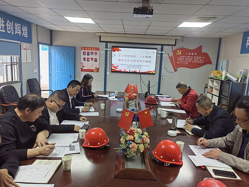 1、堅持理論學習,筑牢“紅色堡壘”,強化“政治引領”。臨時黨支部以習近平“奮進新征程、譜寫新篇章”、“黨的二十大”精神主題教育深入學習黨史并進行黨史知識測試,引導全體黨員、項目員工深學篤行習近平新時代中國特色社會主義思想,認真落實“三會一課”制度。