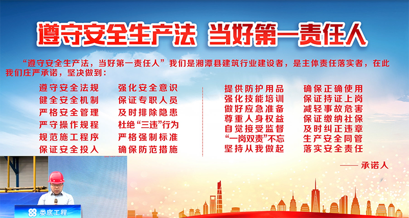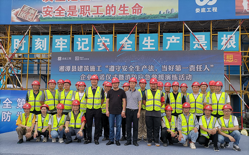 為了進(jìn)一步加強(qiáng)安全生產(chǎn)工作,認(rèn)真落實(shí)2022年安全生產(chǎn)月活動(dòng)文件要求“遵守安全生產(chǎn)法,當(dāng)好第一責(zé)任人”有效防范事故的發(fā)生,為進(jìn)一步提高公司安全管理水平,規(guī)范公司安全生產(chǎn)過程的管理工作,為加強(qiáng)和促進(jìn)應(yīng)急管理工作,全面貫徹“安全第一,預(yù)防為主,防消結(jié)合”的消防工作方針,2022年6月23日9:00,湘潭縣住房和城鄉(xiāng)建設(shè)局在我司承建的湘潭江聲壹號(hào)一期項(xiàng)目開展了湘潭縣建筑施工“遵守安全生產(chǎn)法,當(dāng)好第一責(zé)任人”企業(yè)承諾儀式暨消防應(yīng)急救援演練活動(dòng)。出市本次活動(dòng)的的嘉賓有:湘潭縣人民政府副縣長(zhǎng)肖睿,湘潭縣政府辦副主任言志強(qiáng),湘潭縣住建局黨委書記局長(zhǎng)吳能,湘潭縣應(yīng)急管理局黨委書記局長(zhǎng):劉江華,德智置業(yè)公司總經(jīng)理:龔永兵,婁底工程建設(shè)有限公司副總經(jīng)理顏克靈,中國(guó)人民財(cái)產(chǎn)保險(xiǎn)股份有限公司湘潭支公司經(jīng)理朱星海。