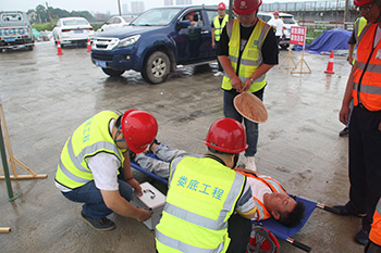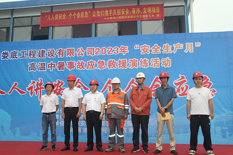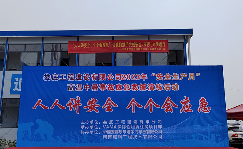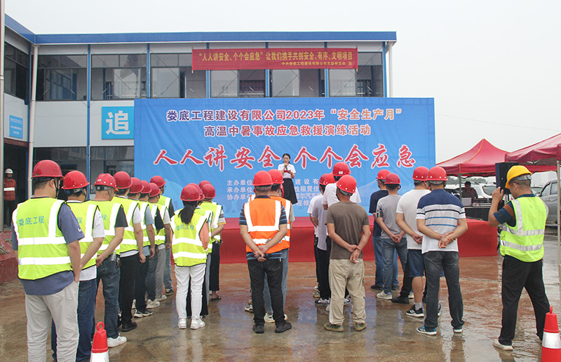 為響應(yīng)省、市2023年“安全生產(chǎn)月”活動有關(guān)文件要求,圍繞“人人講安全 個個會應(yīng)急”的主題進一步提高公司安全管理水平,規(guī)范公司安全生產(chǎn)過程的管理工作,本著"安全第一、預(yù)防為主、綜合治理"的安全管理方針,在發(fā)生高溫中暑事故時,能夠迅速有效進行搶救,通過高效率的組織體系應(yīng)對突發(fā)事件,以最短時間、 最有效的方法控制和減少人員財產(chǎn)損失,減少人身傷害事故。公司于2023年6月13日上午10時在VAMA保障性租賃住房項目部開展高溫中暑事故應(yīng)急救援演練活動。婁底市經(jīng)開區(qū)住房和城鄉(xiāng)建設(shè)局領(lǐng)導(dǎo)李愛民先生、康城先生,建設(shè)單位代表藍斌先先,監(jiān)理單位代表劉少勇先生,公司總經(jīng)理胡勁、黨支部書記何林、副總經(jīng)理彭洪偉出席了次此活動,公司各部室及婁底城區(qū)中心項目部近40余人參加了此次活動。